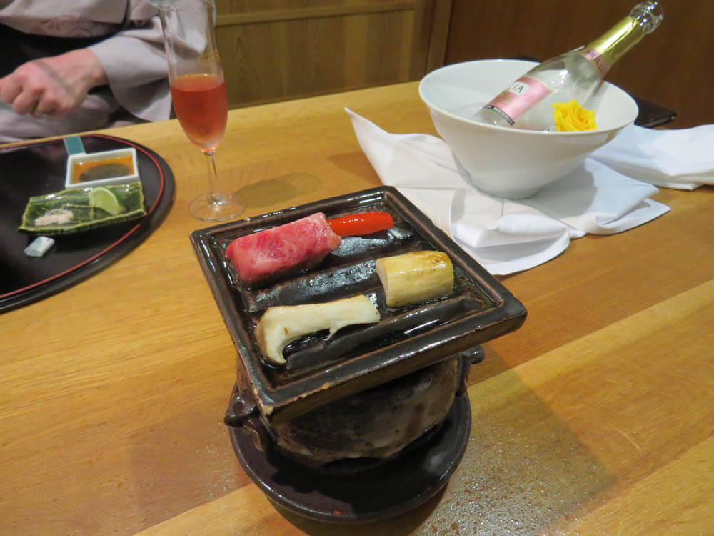 Yakimono (grilled dish) – Again, this could be seafood, meat or vegetables depending on the location, season and the chef. Ryokans inland will often use this dish to showcase local beef. Sometimes the grill will be brought to the table and you can cook the meat to your own liking.